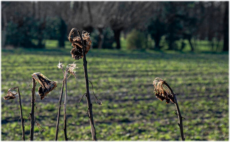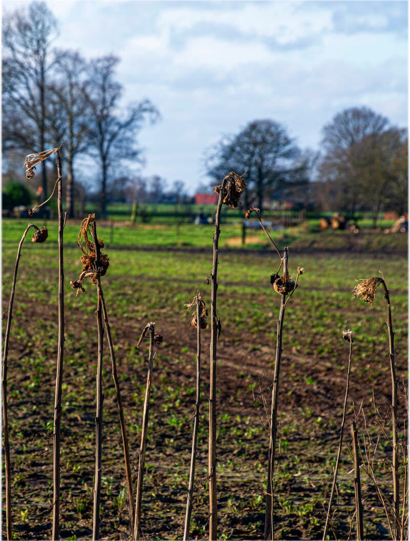 07-01-2024, Dode zonnebloemen in bevoren land