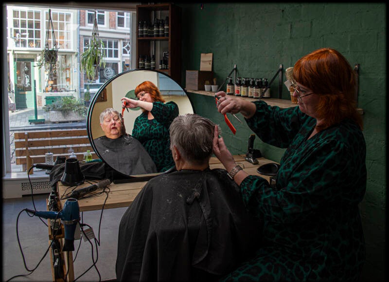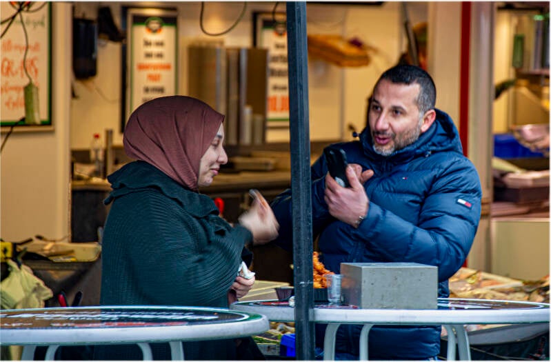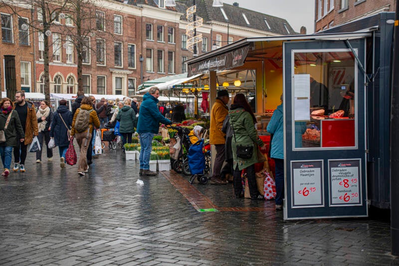 20-01-2024, Christine bij de kapper . Leeg terras en visje op de de markt