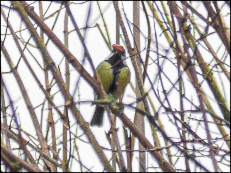 31-01-2024 Koolmees op de hoek Vispoortstraat en Hoornweg in Zutphen. Maar wat heeft íe in z'n bek?
