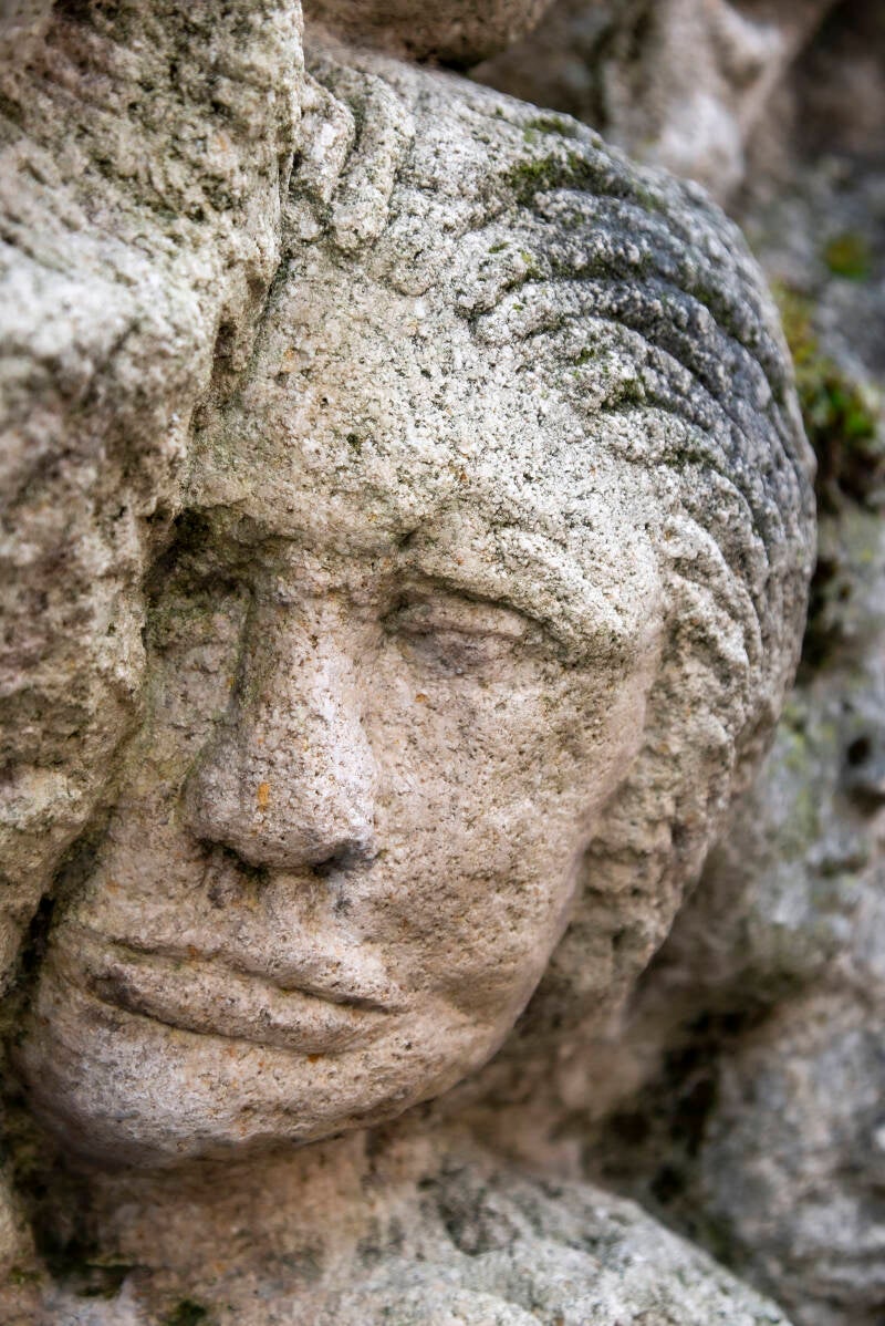 De koppen zijn in beton gemaakt en zijn bewoners van de stad. Deze kop lijkt op Bach vind ik.