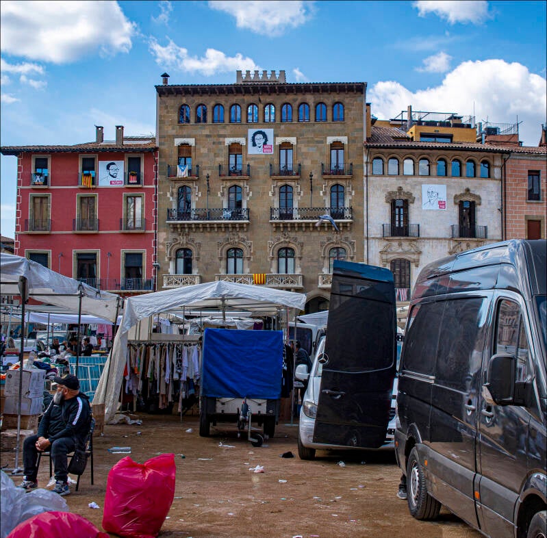 Aan het mooie plein hangt ook de vlag van Catalonnia, vaak kom je de vlag bij huizen tegen