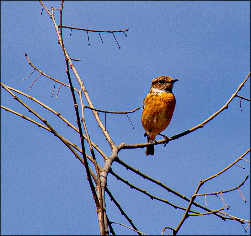 Als we daar aangekomen zijn, een boterham hebben gegeten gaan we naar de stad. We worden verwelkomt door een prachtige Roodborsttapuit.
