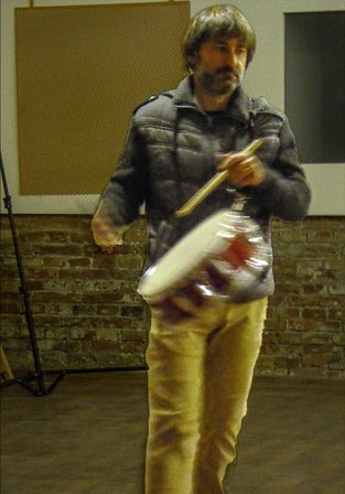 Later op de avond zijn 3 slawerkers aan het oefenen, vermoedelijk voor een procesie