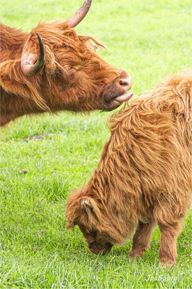 Niet alle kalven zitten in een opfokhok gelukkig. Hier kan de koe haar kalf bij zich houden en er voor zorgen.
