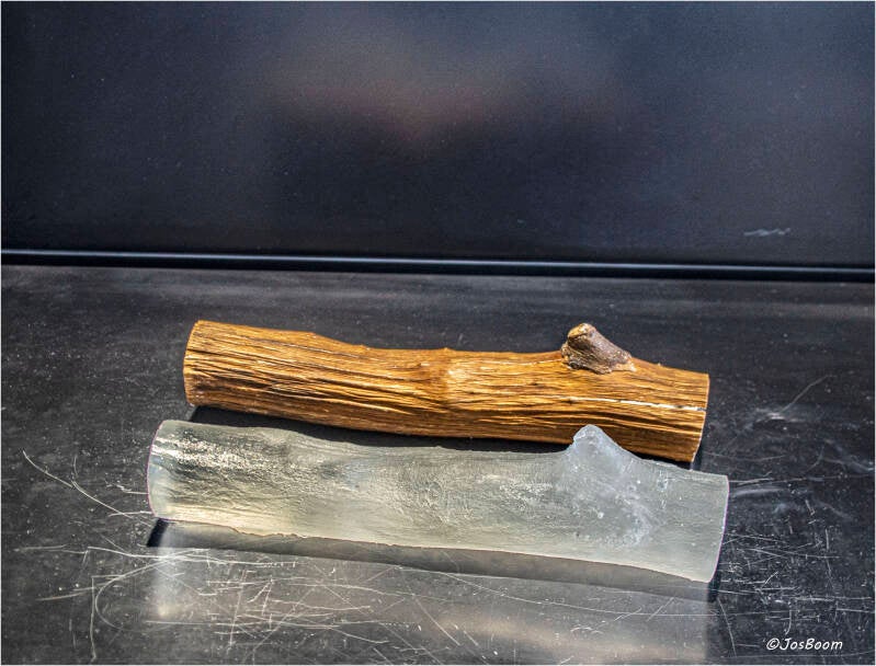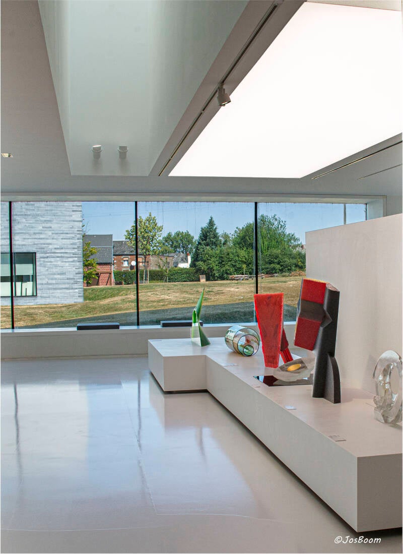 De collectie bevat allerlei richtingen, van fantasi tot dagelijkse zaken. De stoel en de wortel van de boom zijn van glas. De koeien buiten zijn echt.