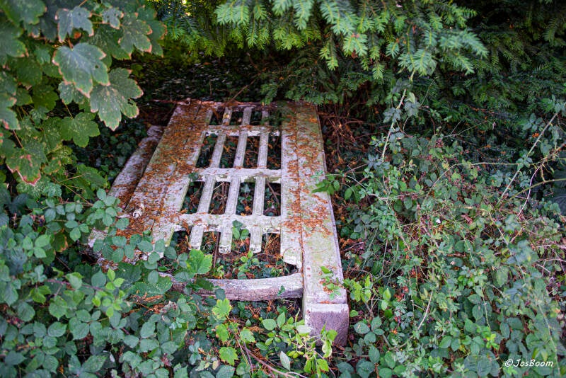 Vlak bij onze plek staat een verlopen was- en toilet gebouw. Uiteraard buiten dienst.