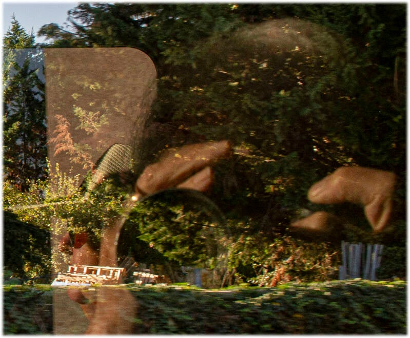 Een niet bedoelde foto met fraaie spiegeling. Deels en geheel. Als je goed kijkt zie je ons beiden.