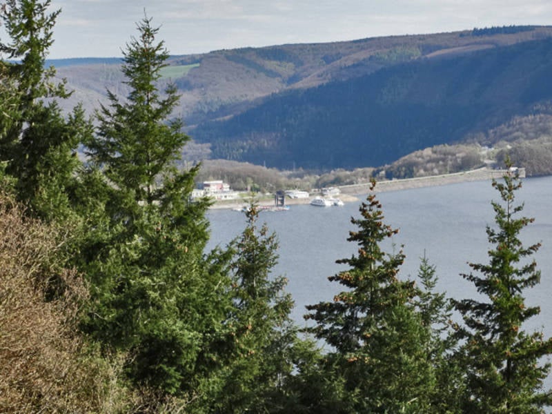 Na Saarlouis willen we nog een 'dagje' natuur met wandeling. We rijden naar het dorpje Schmidt aan de Rursee. Een gratis plek met mooi uitzicht maar geen faciliteiten.Hier het panorama van de Rursee.