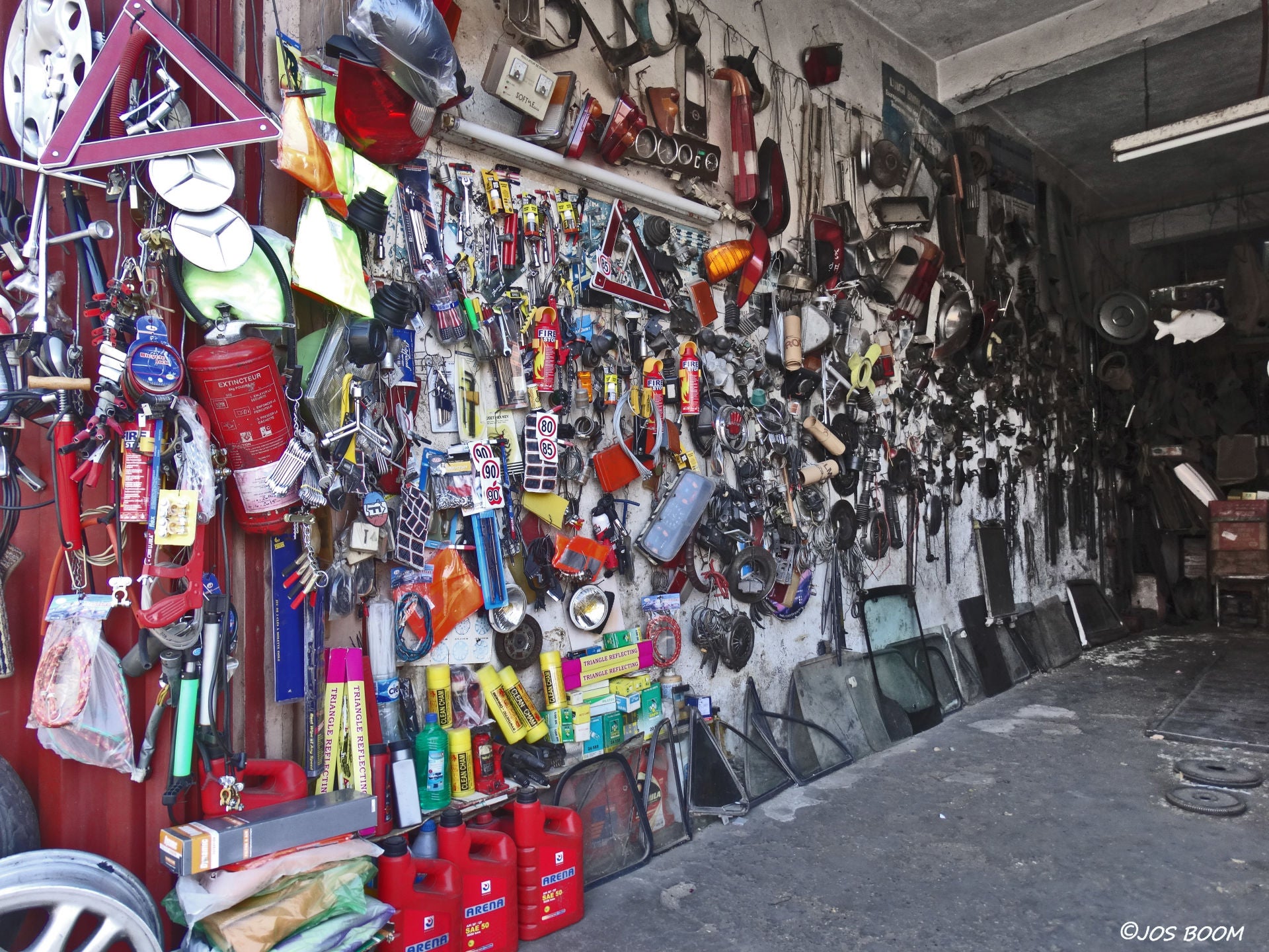 Veel business is gevestigd onder woningen, kleine zaken, soms maar een paar vierkante meters, die vrijwel altijd helemaal gevuld zijn met voorraad.