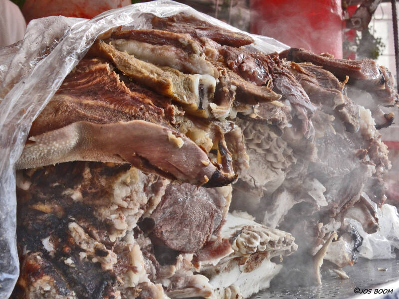Deze slager heeft verse kameel in de aanbieding, smaakt prima.