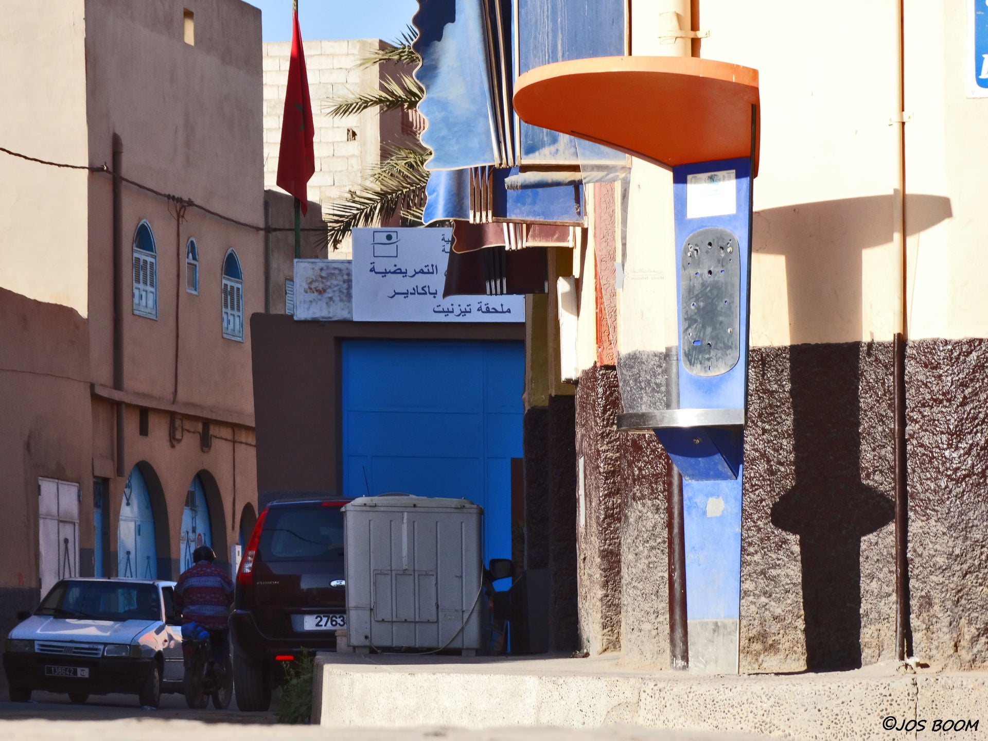 Je mag in Smara staan met de camper, maar alleen hier, vóór het politiebureau, dat wil de chef om gedoe te voorkomen.