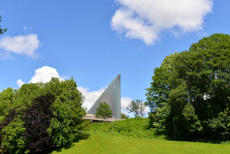 Werk aan de weg kan in Scandinavië nou eenmaal alleen maar in de zomer, 's winters vriezen de wegen kapot en 's zomers worden ze weer gerepareerd, en dan moet je even wachten en kun je zien hoe een kraanmachinist grote rotsblokken met z'n kraan weet te verplaatsen naar waar die ze wil. Vakmensen boeien altijd met hun bezigheid.