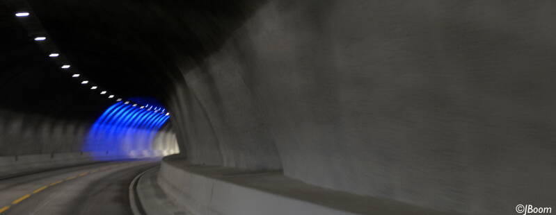 En uiteraard komen we weer tunnels tegen, deze heeft een stuk blauwe verlichting, geen idee waar dat voor dient. Het is wel mooi, misschien om aandacht te trekken?