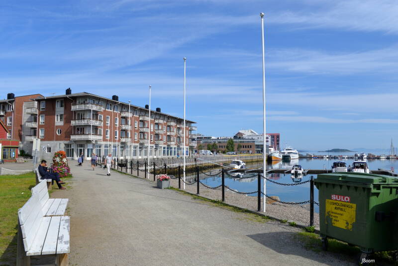 In Harstad wonen een kleine 25.000 mensen, toch heeft het een universiteit en een concertzaal. Langs de haven zijn aardig wat flats gebouwd, deze hier zijn niet heel recent, verderop staat wel een complex dat er behoorlijk nieuw uitziet.
