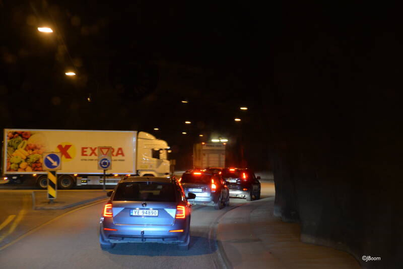 Na Husoy rijden we naar Mefjord, vergelijkbaar maar iets meer bedrijvigheid. De reis door de tunnels terug is nu opletten geblazen, er is aardig wat verkeer van de andere kant dus een paar keer is het stapvoets rijden. Gelukkig hoeven wij niet achteruit, De anderen staan er telkens beter voor om uit te wijken of achteruit te gaan.