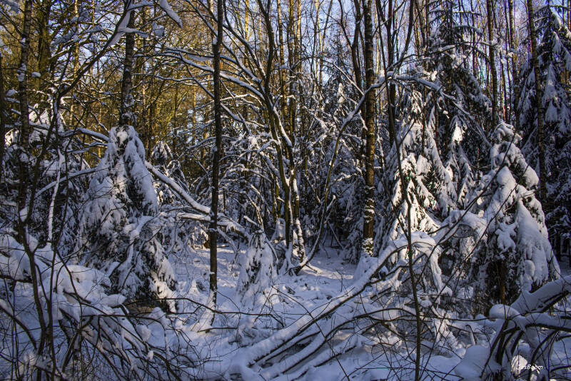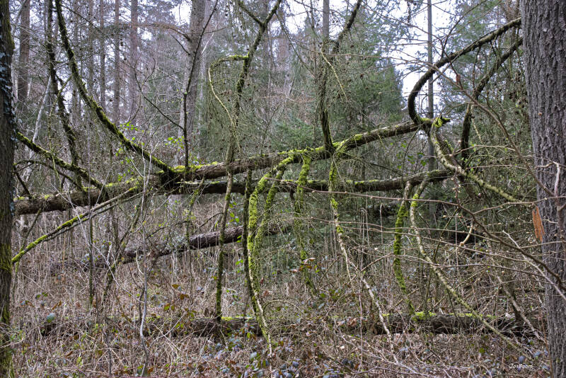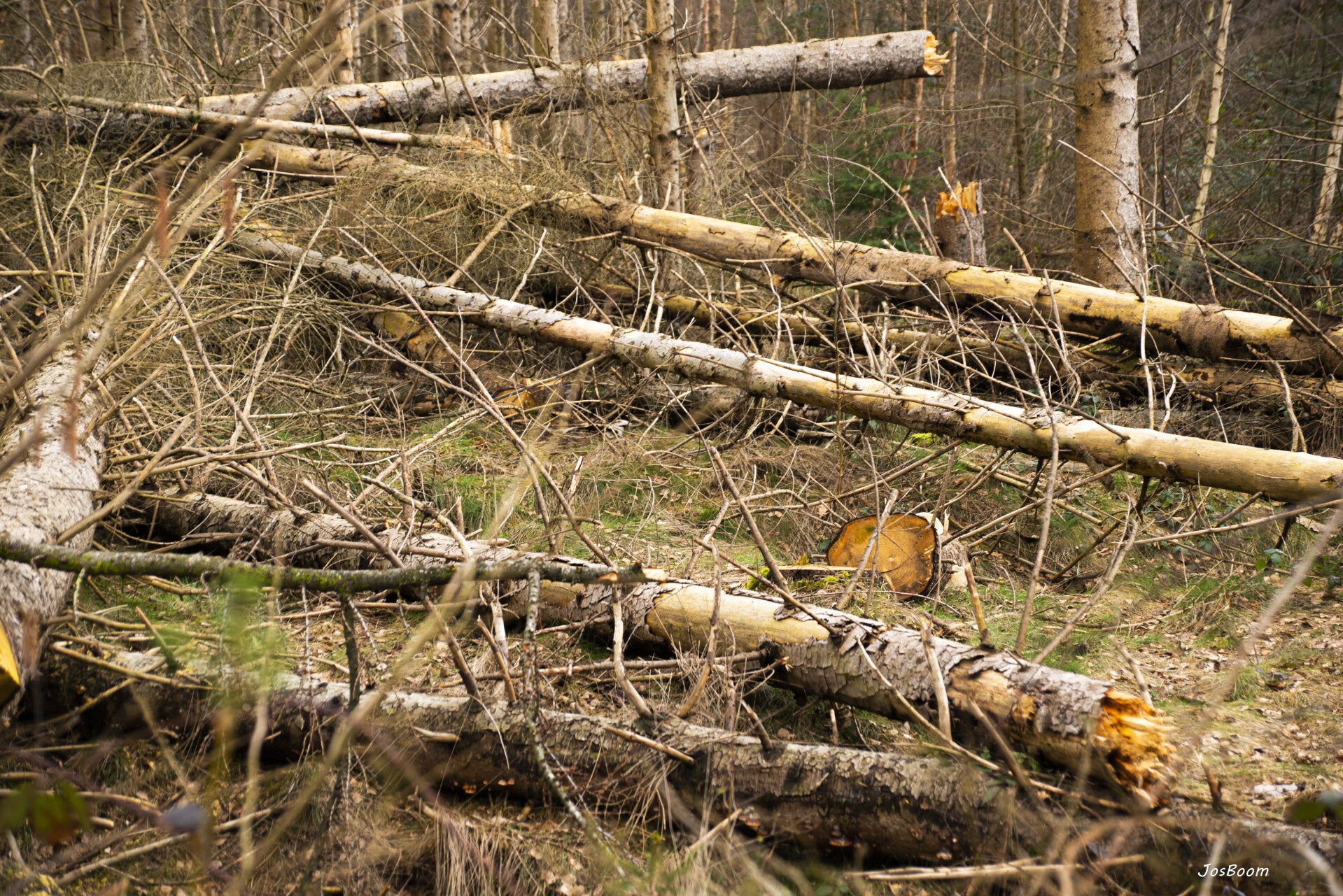 Het bos is hier en daar behoorlijk beschadigd, niet alleen door de storm, er wordt ook heel wat gekapt.