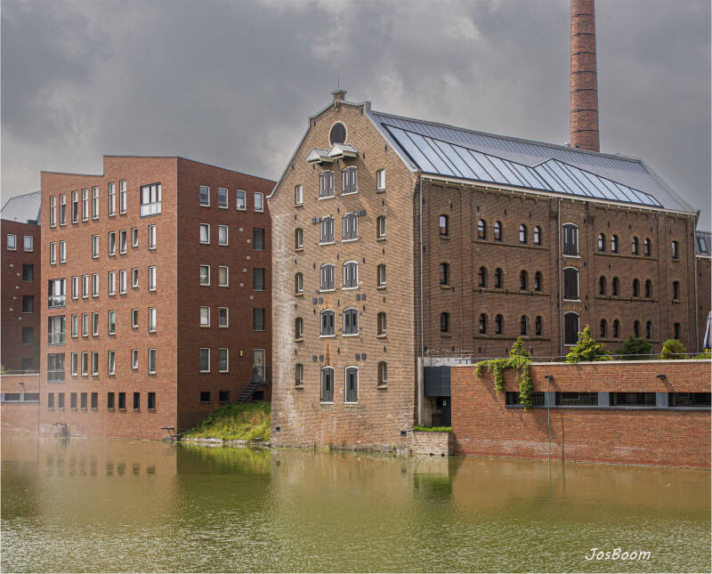 Deventer, zorgvuldige mooie nieuwbouw naast industriële oudbouw. Het kan,