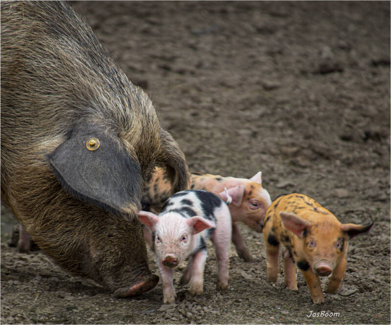15-04-2022, De Velhorst, landgoed met biologische buitenvarkens. Volgens iemand die ook geniet van deze biggen zijn ze 2 dagen oud. 8 biggen en de zeug