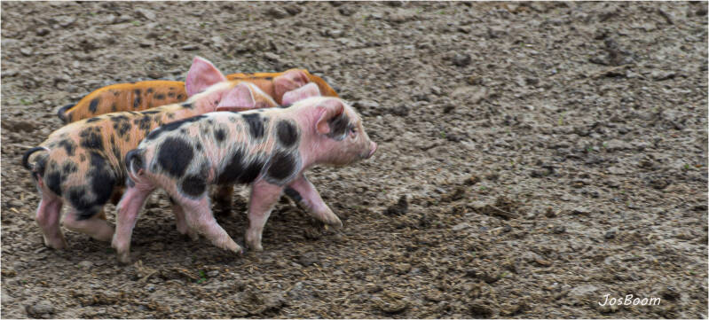 Even lopen de biggen naar de stal, maar al snel gaan ze weer naar buiten.