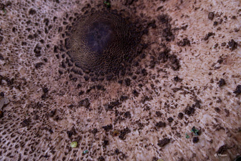 Vlak onder de hoed is de stam geknikt. Deze staat nog fier overeind