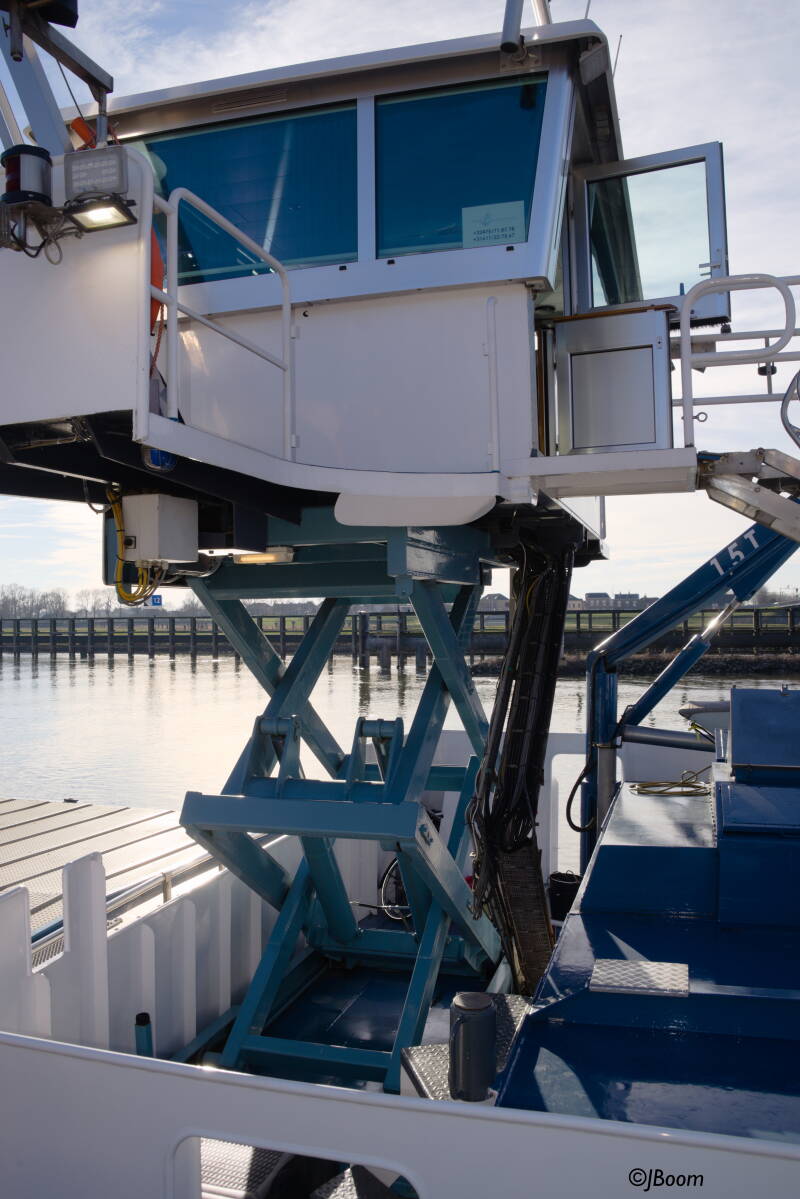 Het schip heeft een beweegbare brug, of om onder lage bruggen door te kunnen of om over een hoge lading (containers bijvoorbeeld) heen te kunnen kijken.