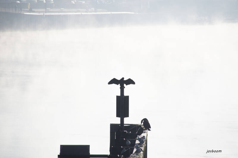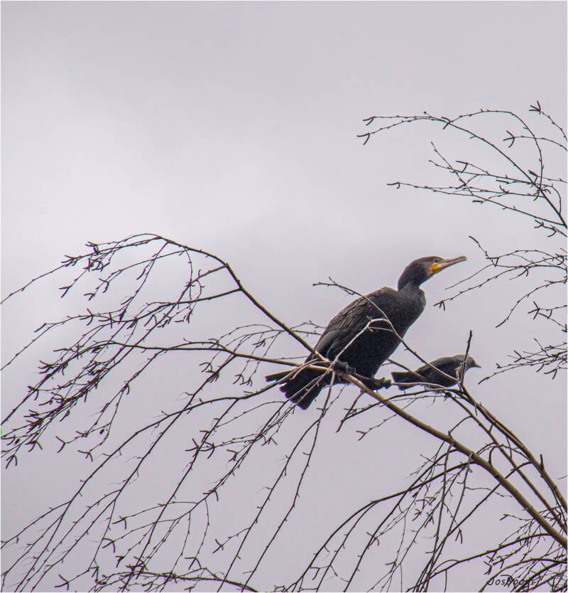 04-01-2023. Er rust een aalscholver in een boom aan de Berkel bij de Rozengracht.