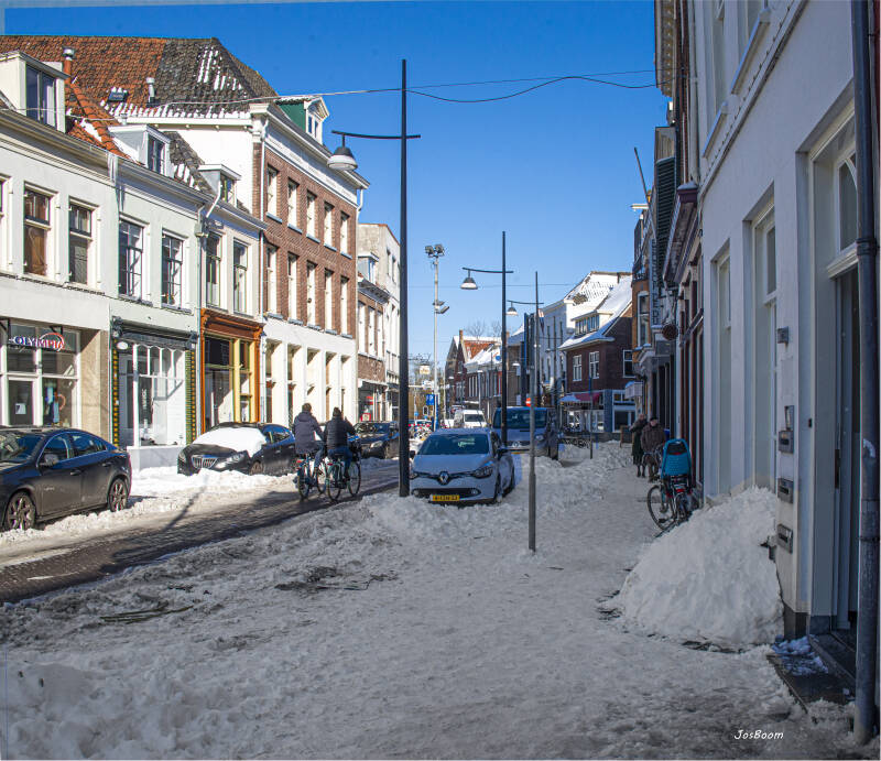 De lange Hofstraat overgaand in de Korte Hofstraat