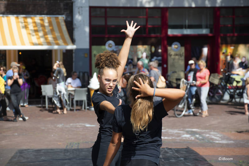 31 augustus 2019 Drie dansgroepen laten hun kunsten zien in de stad. Het zijn alledrie groepen met jonge dansers. Bij de Walburgkerk danst een groep modernballet, op de Schupstoel hiphop en breakdance, en in de Beukerstraat klassiek ballet. Het talent en het plezier spettert in het rond.