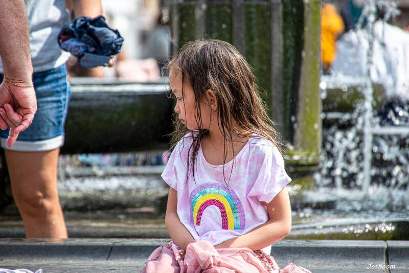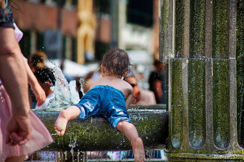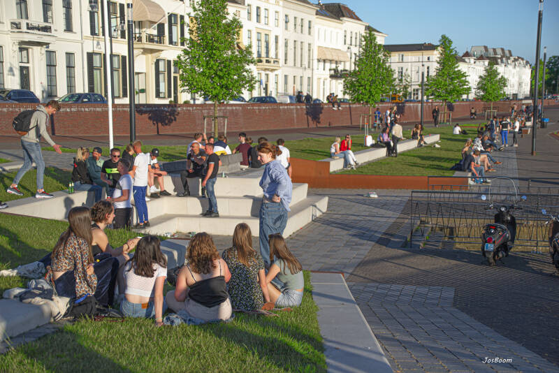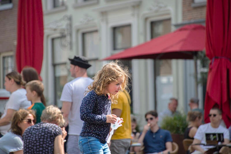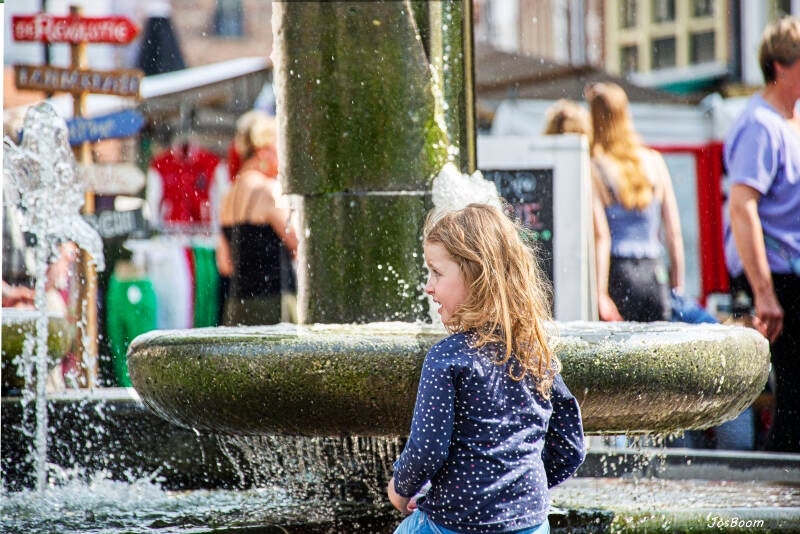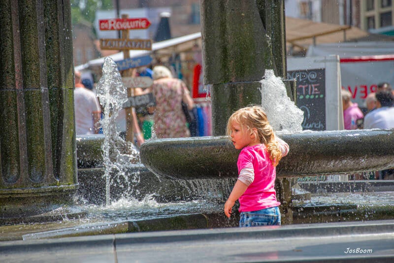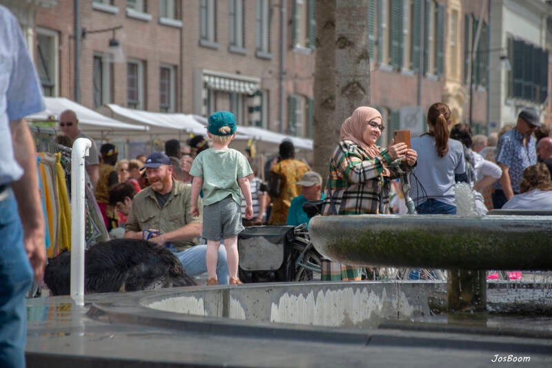 21-05-2023. Eindelijk is het zomers weer, er is de grote lente markt, kinderen spelen bij de fontijn.