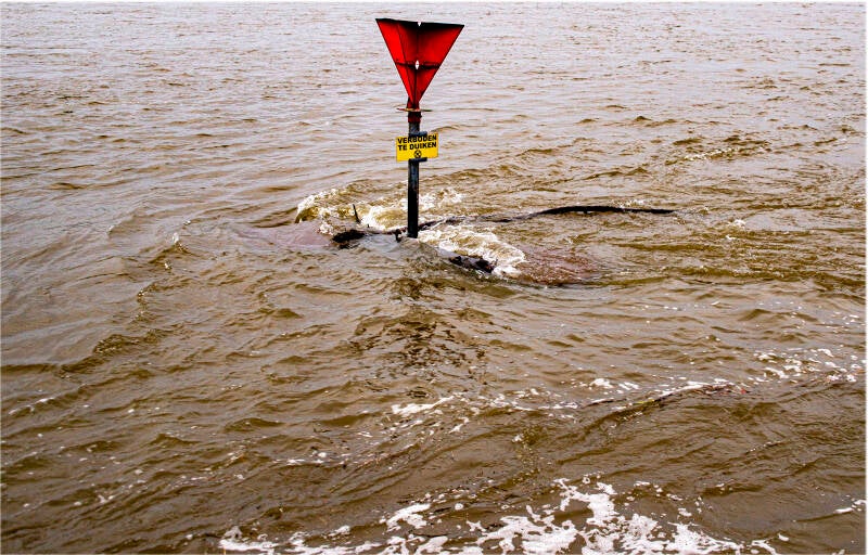 Deze bordjes stonden er al, maar nu staan ze op degelijke palen die niet weg gespoeld worden mocht het water nog hoger worden