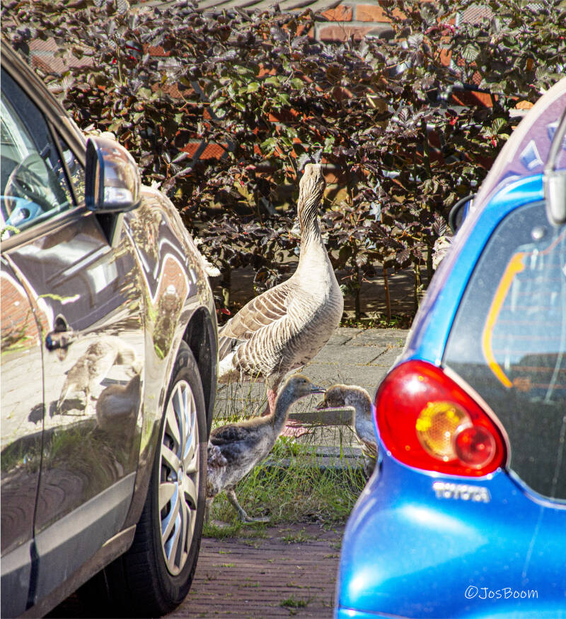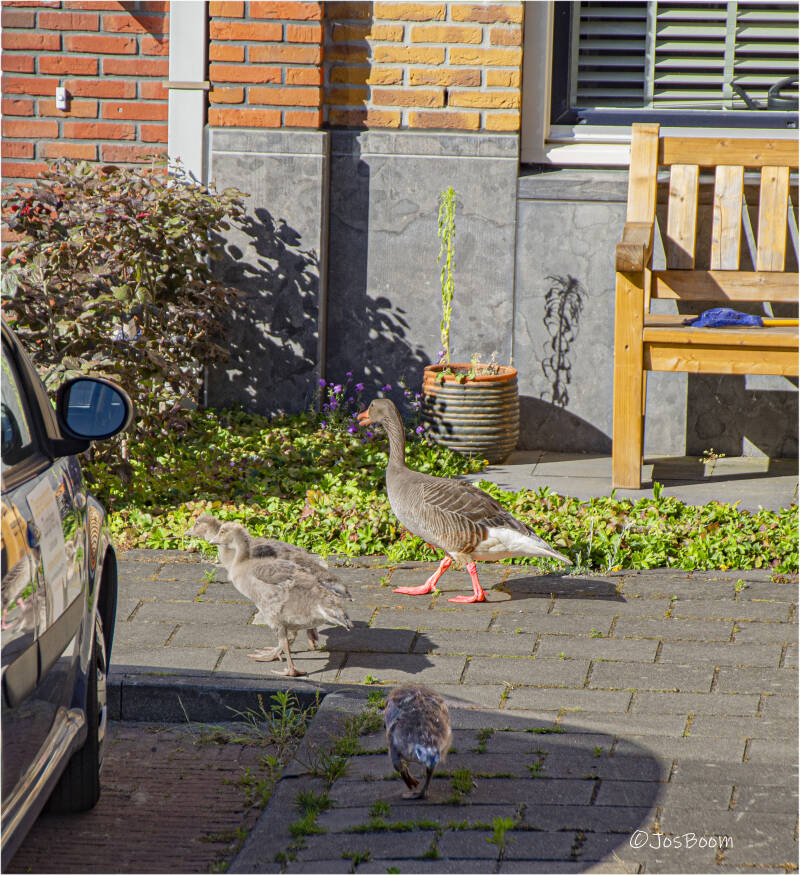 23-06-2022, een ganzen familie loopt door de straat waar ik woon.