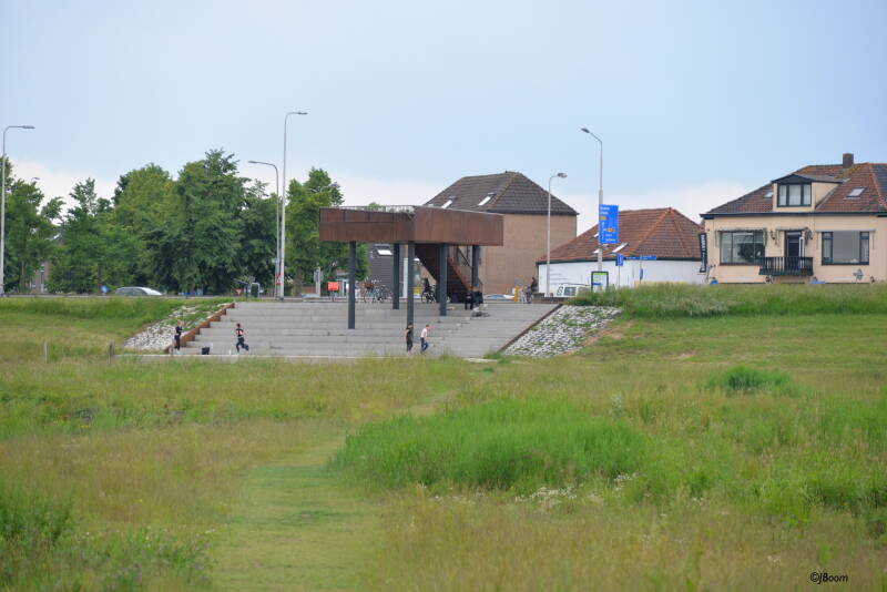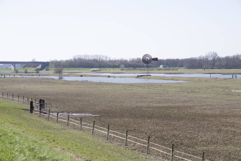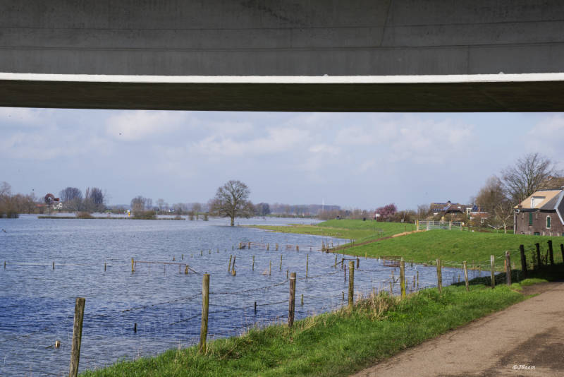 06-06-2019, Voor het eerst loop ik via de trap van de brug naar de uiterwaard naar het hoogwateruitkijkpunt aan de Hovense kant.