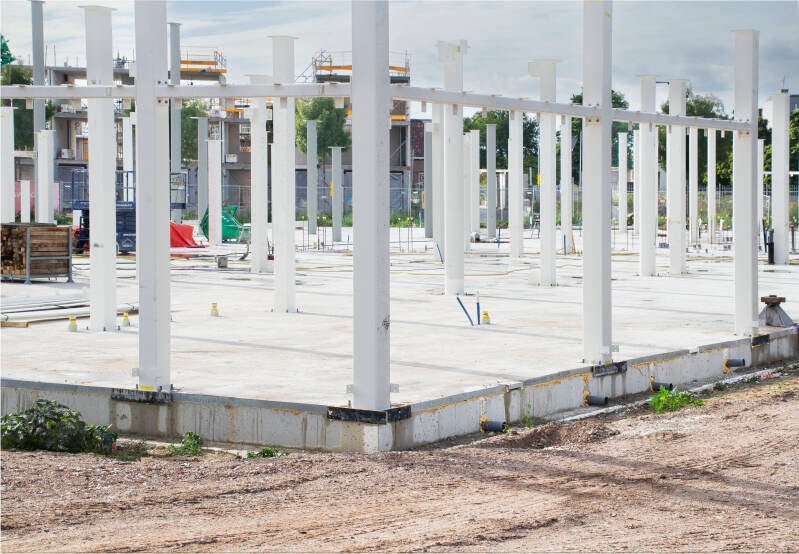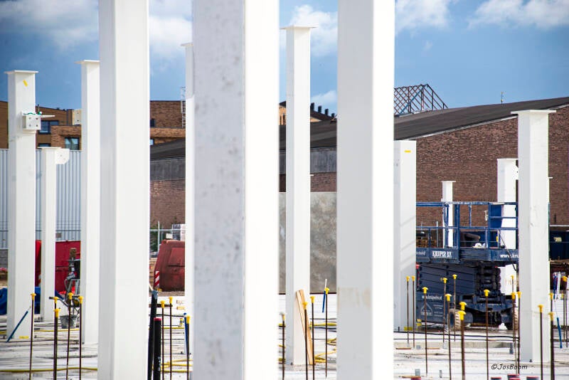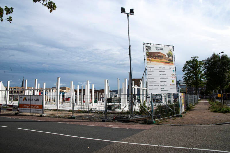 14-09-2022 Compaan krijgt een nieuwe school, moet in augustus 2023 open gaan.. De vloer ligt er en er staat een bos van stalen palen.