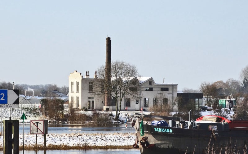 09-01-2019 De westoever van de IJssel gezien vanaf de IJsselkade. Het huis staat als enige gebouw in de uiterwaard, het staat dan ook op een verhoging van aarde.