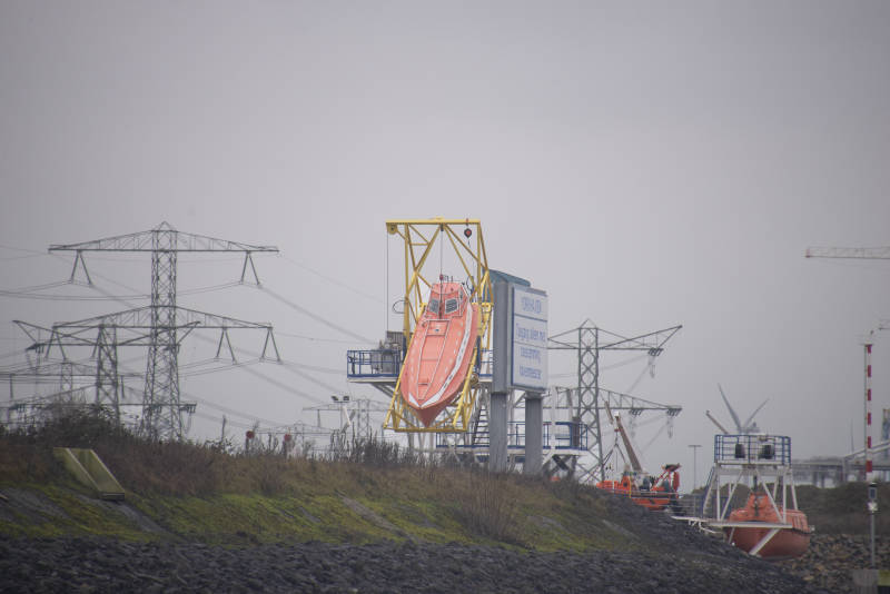Dit is een reddingsboot in oefenopstelling. Op moderne schepen is nog maar één reddingsboot aanwezig, die is geplaatst op de achtersteven en kan ,als iedereen is ingestapt, worden gelanceerd. Deze schepen kunnen veel mensen bergen, hebben een motor, en water en voedsel aan boord.